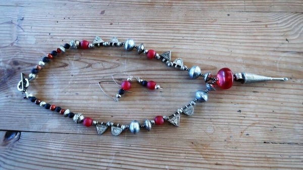 Vous découvrirez également de vieilles perles d’argent, quelques perles de cornaline, des perles de telsum, des perles de pierre de lave, du verre recyclé du Ghana et des perles tibétaines.